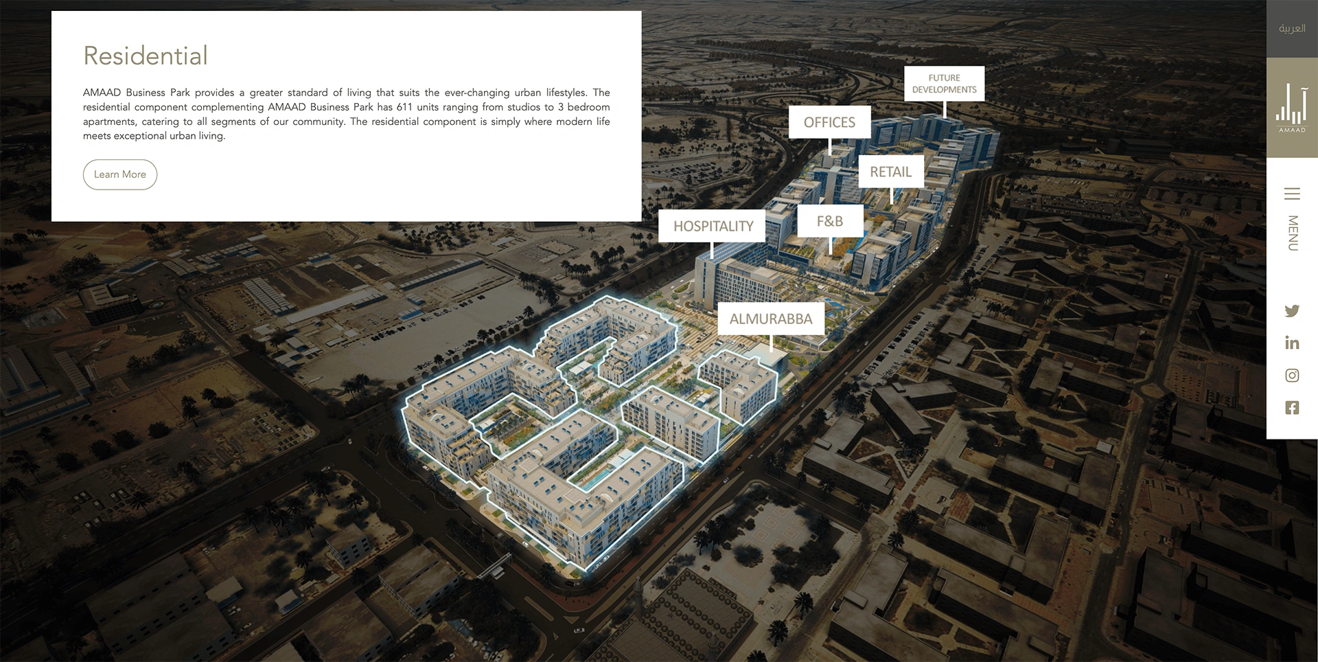 The AMAAD website serves as the primary online presence for a modern business park, reflecting its luxurious yet simple lifestyle. The website aims to provide comprehensive information about AMAAD to its visitors through an optimal UI/UX design.